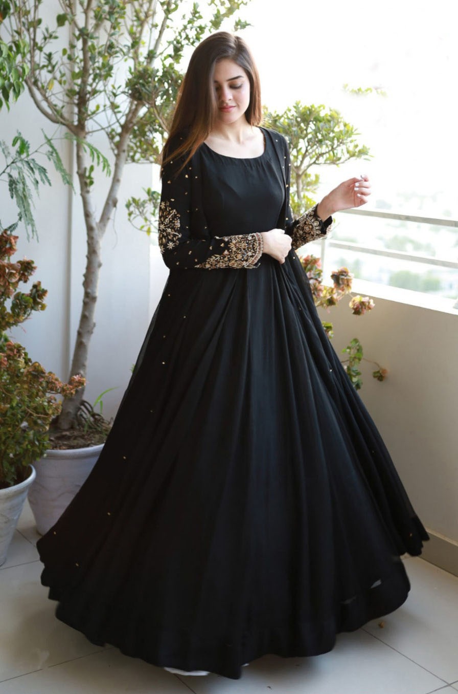 🔹Heavy Embroidered With Front And Back Pearls Attached Gown With Long Maxi Trouser