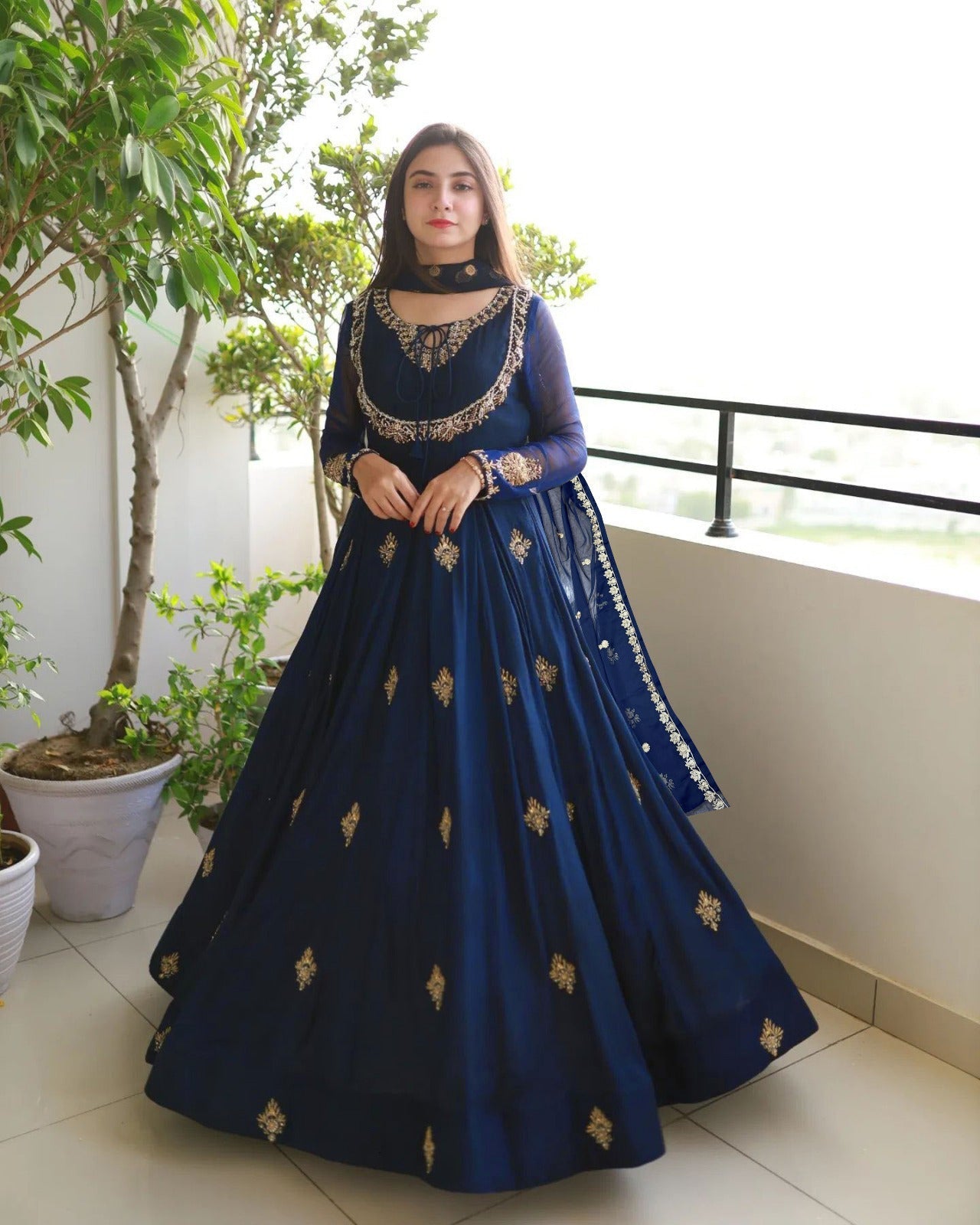 Neck,Sleevee,Front Embroidered Maxi With Emb Dupatta 3Pcs